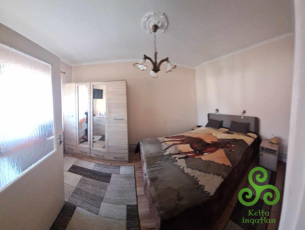 Műanyag nyílászárós, gázcirkó fűtéses.