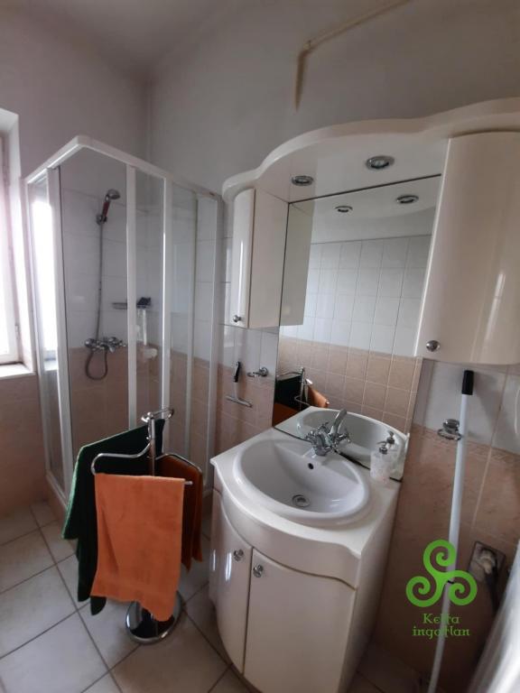 A fürdőszoba távirányítós időszabályzós fűtőtesttel ellátott.